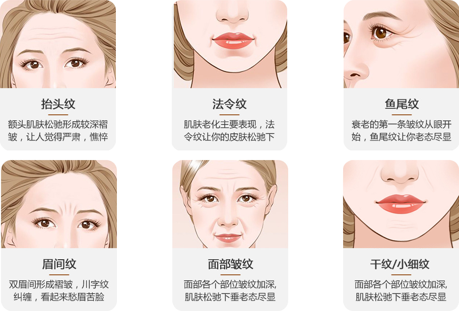 及时修正面部轮廓,冻结肌肉,填充细纹和皱纹,淡化脸上已经出现的皱纹。