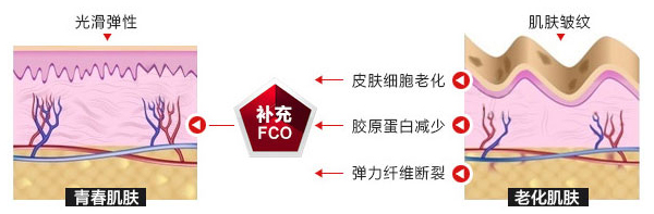 老化,就是指皮肤明显呈现出了让人看起来比实际年龄大的徽状。例如慢性暗沉,深皱纹,皮肤整体松弛,法令纹等。